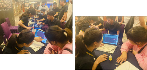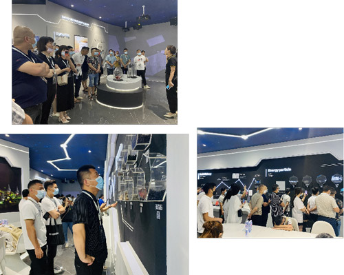 在总部老师的引导与讲解下,各位经销商朋友先后参观了能量科技馆、岩板瓷砖岩值馆以及J12甄石新品区,全方位了解高德产品魅力。