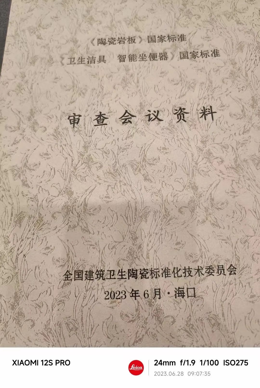 在此次换届大会上,全国建筑卫生陶瓷标准化技术委员会召开了《陶瓷岩板》国家标准审查会议,高德瓷砖受邀参编并出席参与本次标审查会议。高德瓷砖所属集团佛山市三水宏源陶瓷企业有限公司市场部总监吴旭与众多行业专家一起参加会议并交流意见。
