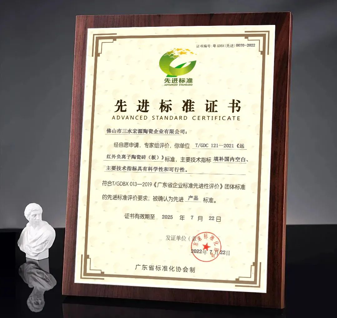 2022年7月,由高德瓷砖主导编制的T/GDC 121—2021《远红外负离子陶瓷砖(板)》团体标准,“主要技术指标填补国内空白,具有科学性和可行性”,荣获“先进标准”称号。