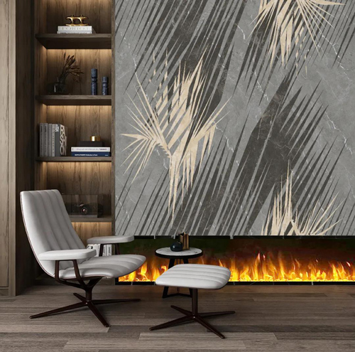 风情葵叶Elegant Kwai Leaf以极具热带风情的蒲葵为设计蓝本,搭配灰、黑、金的撞色处理,营造出一种宁静而又充满张力的高级感,兼具个性和美感,轻松提升空间的艺术氛围。