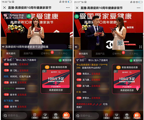持续21天的“高德瓷砖10周年健康家装节”在当晚迎来高潮,直播间中订单不断。截止到直播结束,本次活动总成交单数共计2633笔,总成交金额28,963,622元,活动圆满成功。