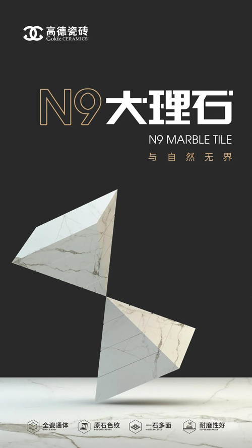 N9大理石是高德瓷砖推出的全新一代通体大理石瓷砖,甄选全球顶级珍稀大理石蓝本,1:1比例扫描复刻,运用前沿的通体布料及高清喷墨技术,重现天然大理石的肌理、触感、颜色、光泽,塑造全瓷通体美感。