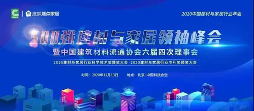 12月13日,2020中国建材与家居行业年会暨500强建材与家居领袖峰会在北京中国科技会堂隆重举行。本届大会提出了构建国际国内双循环的创新思路,共同探讨了未来建材与家居行业的发展机遇,并对推动我国建材与家居行业科技事业进步的贡献者个人或单位进行了表彰。