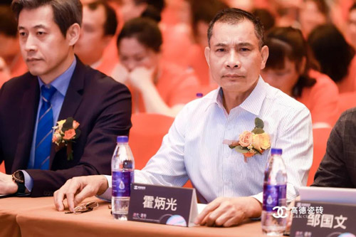 出席本次大会的领导嘉宾有:高德瓷砖所属企业宏源陶瓷集团董事长、总经理梁桐伟先生,中国建筑卫生陶瓷协会秘书长宫卫先生,中国建筑卫生陶瓷协会岩板定制家居分会秘书长安郁利先生,佛山市陶瓷行业协会秘书长尹虹博士,宏源陶瓷集团董事、副总经理霍炳光先生,董事长助理邹国文先生,董事长助理兼发展部总经理庞伟华先生,财务总监何建国先生,高德瓷砖销售总经理王孝红先生,雅罗兰环保科技产品研发中心总顾问王博士,以及腾讯家居、新浪家居、搜狐家居、南方都市报、广东电视台、佛山日报、中国陶瓷网、陶瓷世界、陶瓷财经等30多家行业主流媒体,以及本次盛会的主角:近600位来自全国各地的高德经销商家人们。