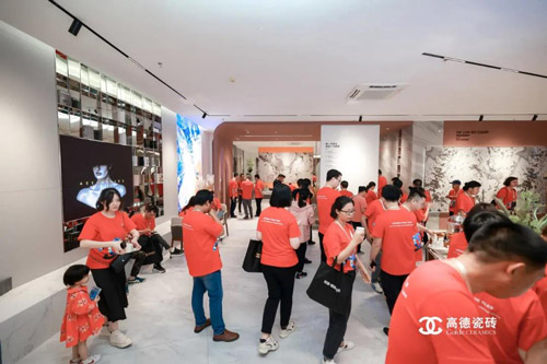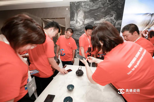 上午会议结束后,高德瓷砖全体经销商家人们前往高德瓷砖总部,参观刚刚落成的「高德·岩板瓷砖·岩值馆」。性能迭代的产品,高级的展厅设计,多元化的产品应用,令经销商家人们叹为观止,纷纷开启点赞模式,打卡留影。
