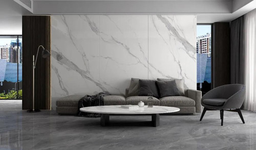 「雪域石Snowfield Stone」灵感源自阿尔卑斯山脉名贵的天然大理石,粗犷浑厚的裂纹如山峦脉络,延伸的线条如优雅的舞者在雪中漫舞。
