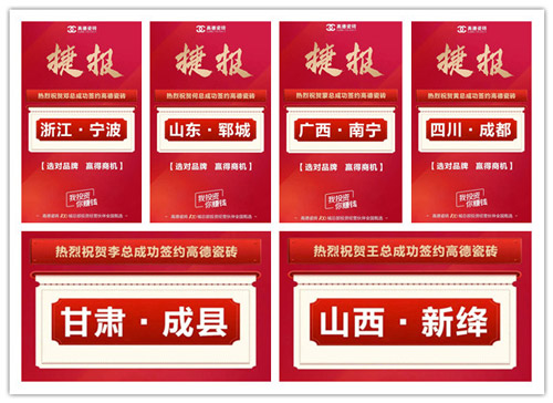 捷报频出,众多客户合作意向强烈,选择加盟高德瓷砖,签约数量高达58家。