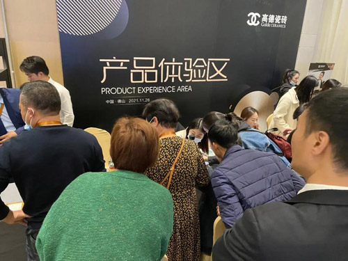 上午,全体经销商朋友在工作人员的引领下参观了高德瓷砖最新总部展厅,近距离了解高德瓷砖的品牌文化与产品矩阵。