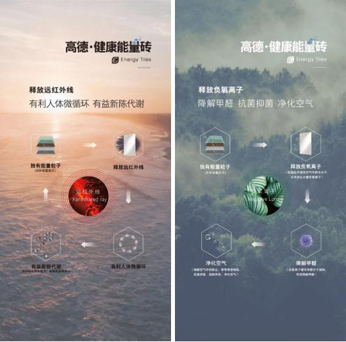 高德·健康能量砖产品从2015年开始研发,历经多次技术攻关,先后攻克“远红外材料”技术难题与“负氧离子”释放寿命技术难题,并于2018年成功推向市场,成为市场上唯一一款集释放远红外线与负氧离子于一体的健康功能性瓷砖产品。