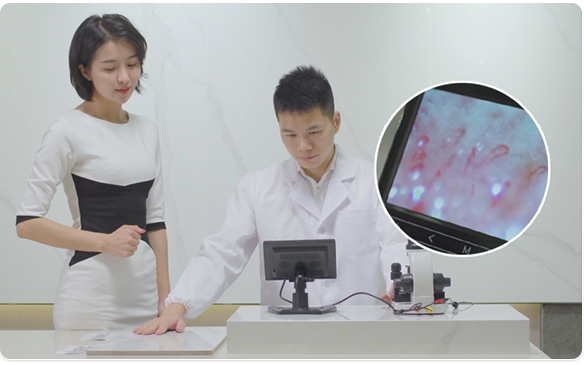 通过微循环检测仪,可以清楚观察到人体在接触高德 · 健康能量砖后与未接触前,血液流速的变化。由此证明,高德·健康能量砖可改善人体血液循环。