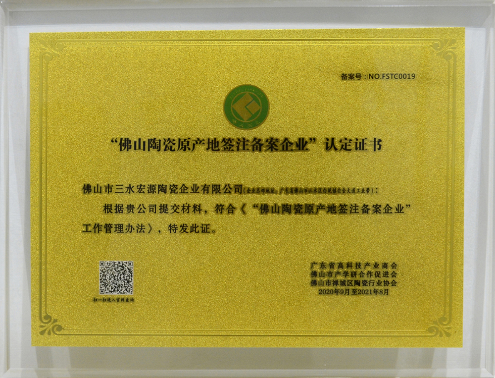 2020年佛山陶瓷原产地认证证书