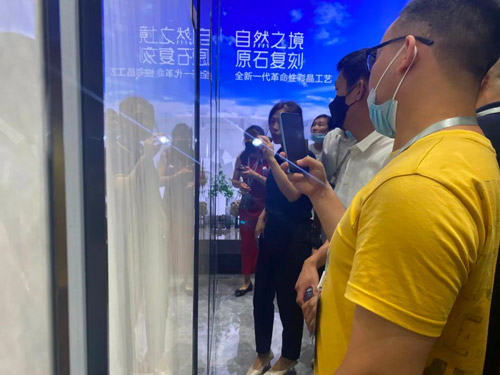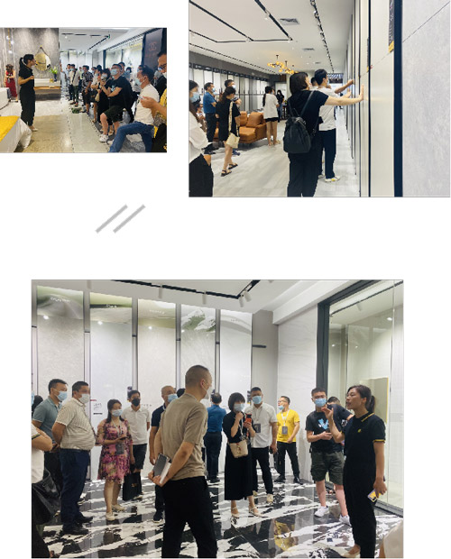 在总部老师的引导与讲解下,各位经销商朋友先后参观了能量科技馆、岩板瓷砖岩值馆以及J12甄石新品区,全方位了解高德产品魅力。