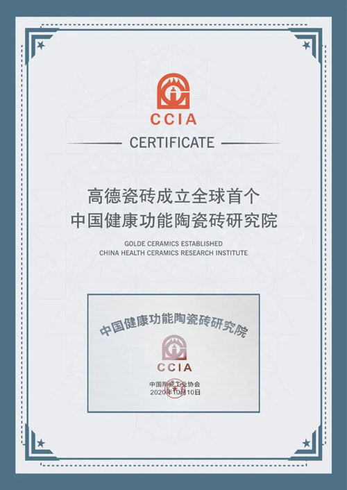 得益于高德·健康能量砖的两大核心功效,由国家级健康部委下属机构“中卫安认证中心”颁发的“远红外健康产品认证证书”,使得高德瓷砖成为行业内首个通过远红外产品认证的陶瓷品牌。