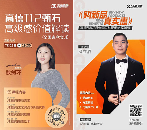 无设计,不成交!设计已成为终端销售的重要组成部分,9月,高德瓷砖联合酷家乐连续举办两场“无设计·不成交—高德瓷砖2022家居设计全案交付”驻店设计师线上集训营,科学合理化定制培训课程,聚焦设计营销,全面赋能终端。