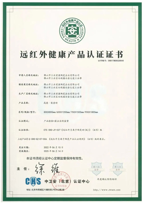 高德瓷砖的实力和远见,助推科研实力的进阶。高德·健康能量砖获得由国家级健康部委下属机构“中卫安认证中心”颁发的“远红外健康产品认证证书”,成为行业内首个通过远红外产品认证的陶瓷品牌。