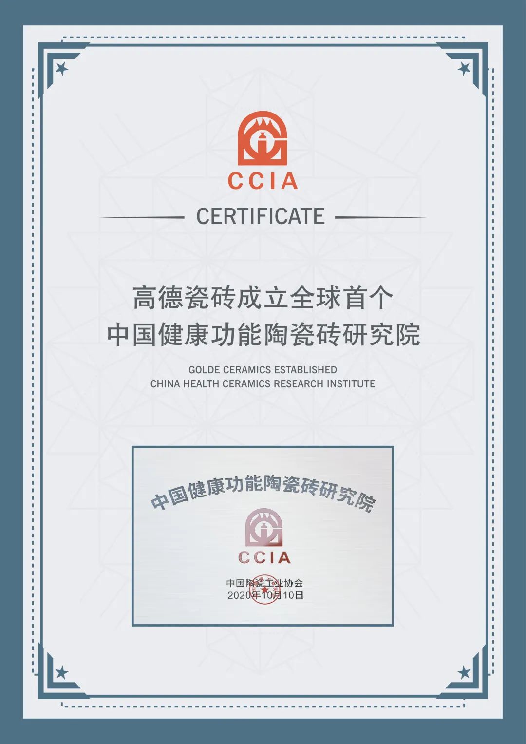 经中国工业陶瓷协会批复,全球首家“中国健康功能陶瓷砖研究院”正式落户高德瓷砖,推动健康瓷砖研究标准从无到有,促进行业发展进入规范化、标准化步道。