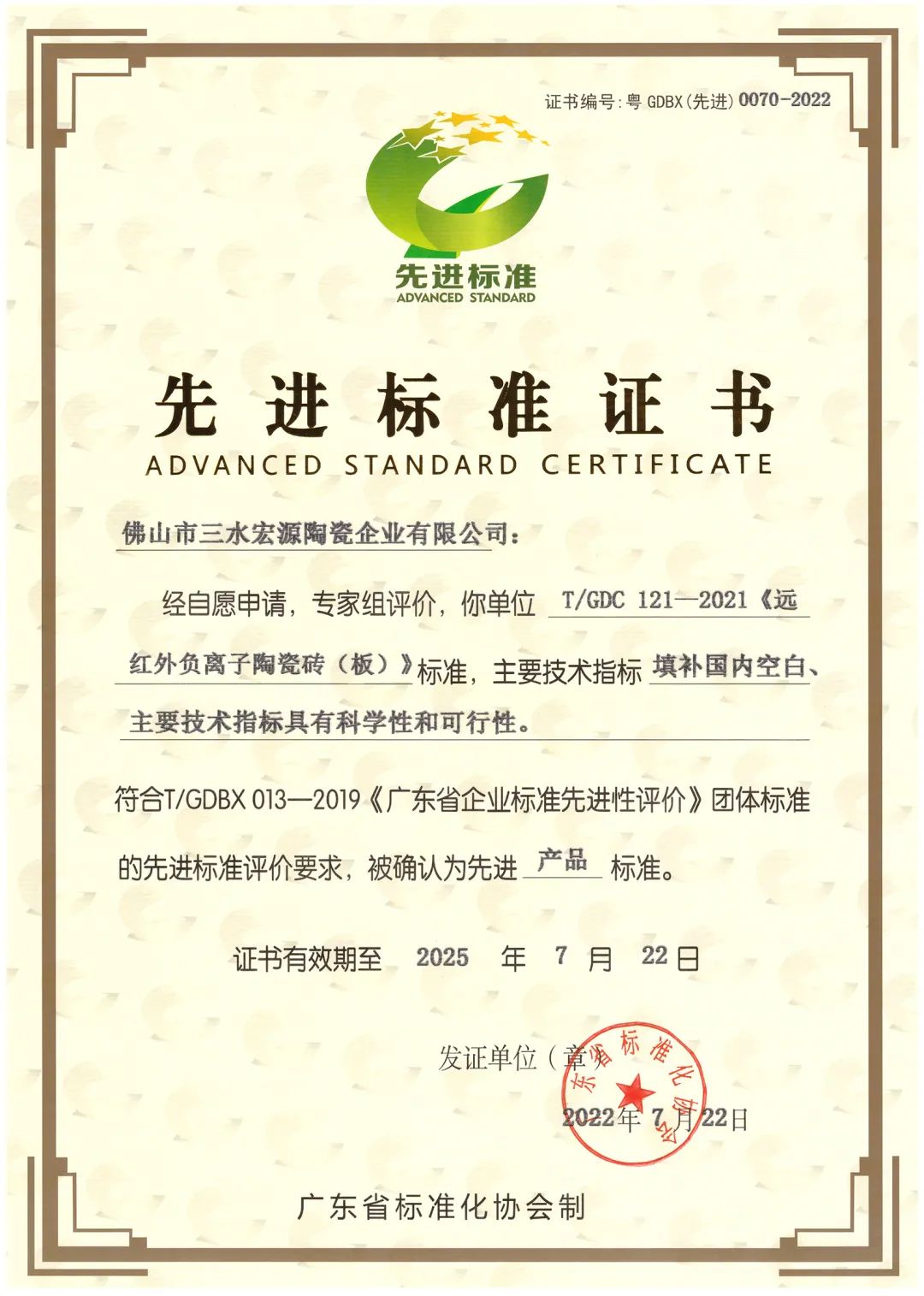 为了推动健康功能瓷砖行业良性发展,高德瓷砖主导编制《远红外负离子陶瓷砖(板)》团体标准,经广东省标准化协会专家评审确认,获得“先进标准”称号;与此同时,主导发布《空气净化陶瓷砖》行业标准,赋予瓷砖空气净化作用功能应用更高标准。促进行业发展进入规范化、标准化步道。