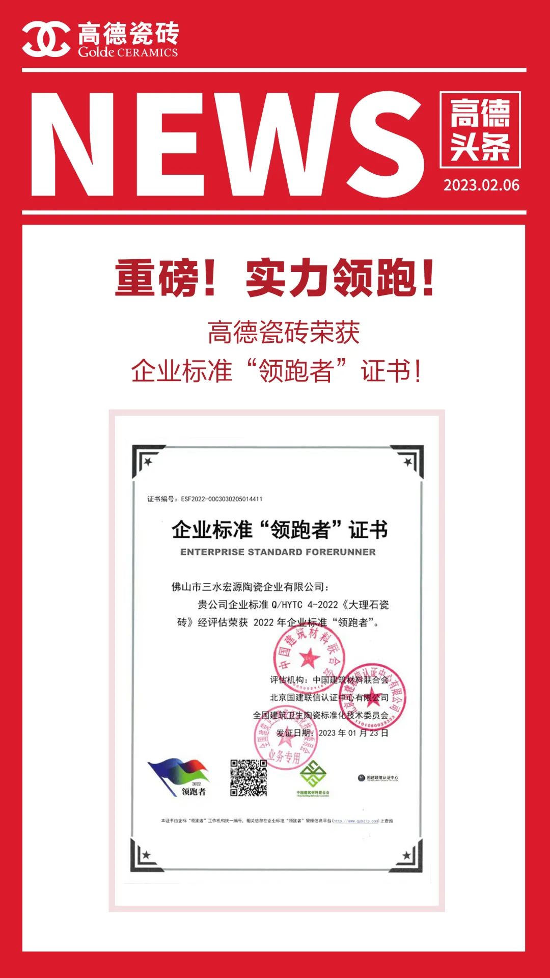 先进标准成就优秀产品,领跑质量铸就良心品牌,高德瓷砖在企业标准“领跑者”的基础上,持续打造“高质量、强健康”的产品品质,用实际行动践行“品质砖 高德造”,赋能品牌向上发展,助推建筑陶瓷行业高质量发展。
