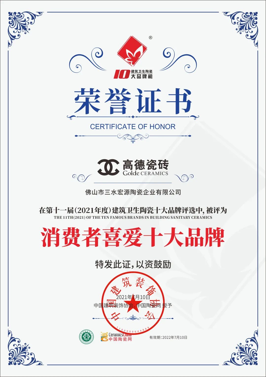 此次荣获佛山陶瓷百家“放心消费承诺品牌”对于高德来说,这不仅仅是荣誉,更是责任和担当。未来,高德也会一如既往秉承初心,坚守产品品质,以更优质的产品和服务回报每一位选择和信任高德瓷砖的消费者。