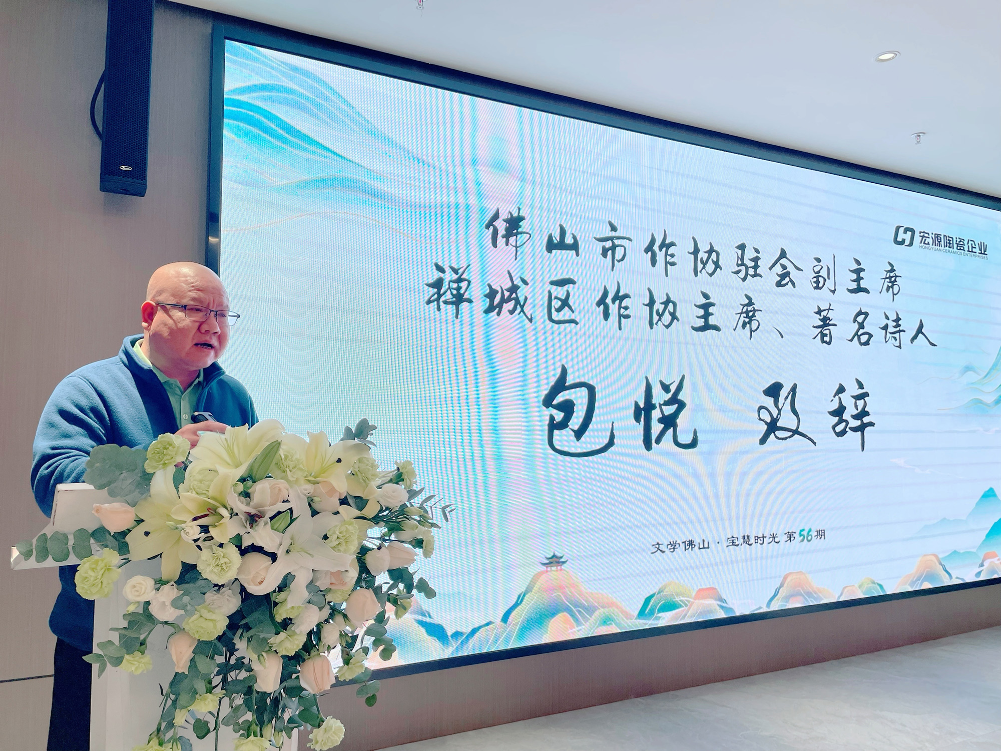 ▲ 佛山市作协驻会副主席、禅城区作协主席、著名诗人包悦致辞