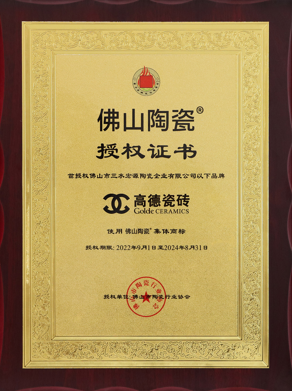 佛山陶瓷,不仅仅是一种文化底蕴,代表的是高品质、高要求。2022年,高德瓷砖成为首批佛山陶瓷商标授权品牌,不仅彰显了高德瓷砖良好的市场口碑与深厚的品牌底蕴,也表明了高德瓷砖在产品品质、品控标准、管理体系等方面已走在行业前列。