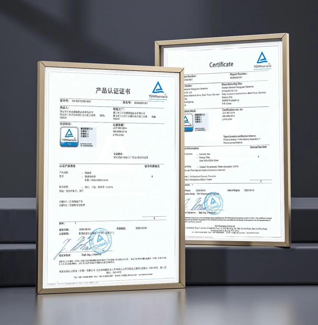 2020年,高德瓷砖成为全国首批获德国莱茵TüV“抗菌陶瓷制品认证”的瓷砖品牌;2021年,通过国家级健康部委下属机构“中卫安认证中心”的权威检测,获得“抗菌卫生认证证书”;同年,高德瓷砖凭借过硬的产品质量与强大的抗菌性能,成功斩获沸腾质量奖“抗菌陶瓷砖”奖项,为高德·健康能量砖的抗菌硬核性能再添权威背书。