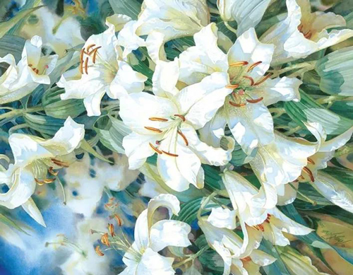 一花一叶,孤芳致洁,朵朵百合隐没于绿叶之中,从容绽放,远观如一幅充满诗意的田园画卷,细闻隐有暗香浮动,令人好不惬意。