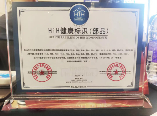 “HiH健康标识(部品)”证书由国家住宅与居住环境工程技术研究中心和国家住宅科技产业创新战略联盟联合颁发,旨在促进优质健康产品在家装领域和房地产项目中的广泛使用,评选出真正符合用户健康需求的产品,倡导绿色健康地产,推动建筑走向卓越品质。