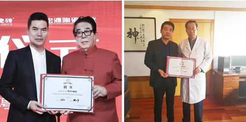 ▲2015年,高德瓷砖联合国医大师张大宁、石学敏等顶尖材料专家、科研院校立项研发“高德·健康能量砖”