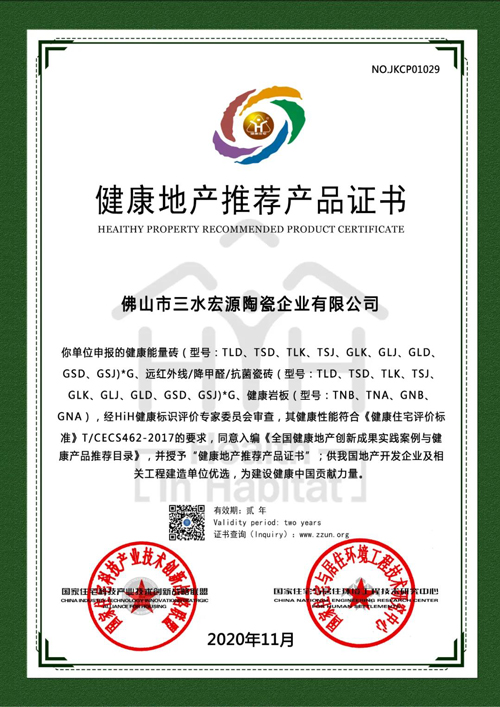 正式成为国家住宅科技产业技术创新战略联盟理事单位,并因健康能量砖产品受到众多地产企业的健康住宅项目青睐,荣获“健康地产推荐产品证书”。