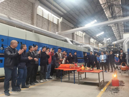 随着鞭炮齐鸣,窑炉被点燃,生产基地岩板瓷砖、岩板生产线全线开窑。