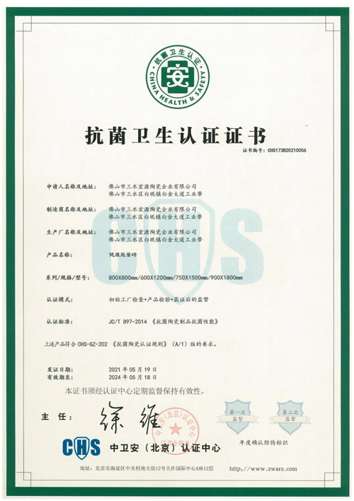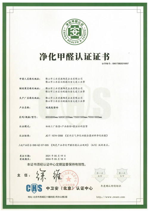 经过严格的审核,高德·健康能量砖的各项流程完全符合健康瓷砖的认证要求,性能指标符合《抗菌陶瓷制品抗菌性能》、《室内空气净化功能涂覆材料净化性能》认证标准。本次获得中卫安双料健康认证既是在意料之中,也是高德·健康能量砖在新的全民健康大背景下对产品功效、品质、性能提出的新要求。Take home health as one's duty骐骥千里非一日之功,荣誉并非偶然。高德·健康能量砖始终坚持技术创新,长期专注于健康瓷砖产品的研发,以全民家居健康为己任,引领了瓷砖行业从性能到功能的革新演变,成为了健康功能瓷砖领域的责任担当。