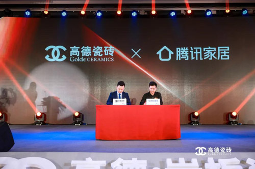 高德瓷砖多年来厚植深耕,已是健康瓷砖的领跑者与岩板瓷砖的开创者。腾讯家居作为陶瓷行业最有影响力的权威媒体,更是能精准洞察消费者行为与经销商心智。本次会议,高德瓷砖与腾讯家居正式牵手,双方签约达成战略合作。