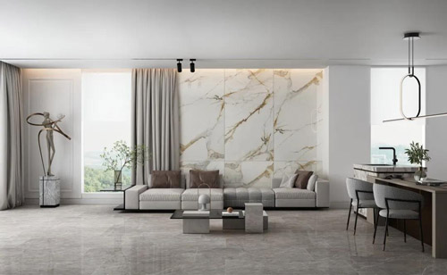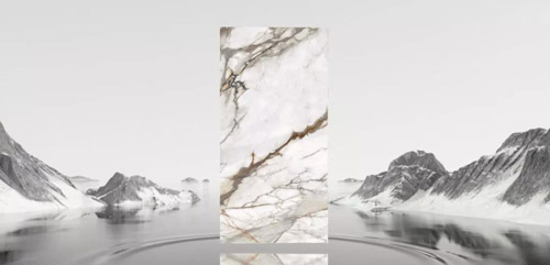 「雪域石Snowfield Stone」灵感源自阿尔卑斯山脉名贵的天然大理石,粗犷浑厚的裂纹如山峦脉络,延伸的线条如优雅的舞者在雪中漫舞。