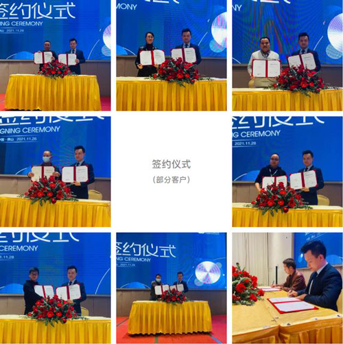 在签约仪式环节,营销总经理王总依次与每位新晋合作伙伴签署了战略合作协议,并合影留念,欢迎他们正式加入高德瓷砖这个大家庭,愿未来携手共赢,再创新章。