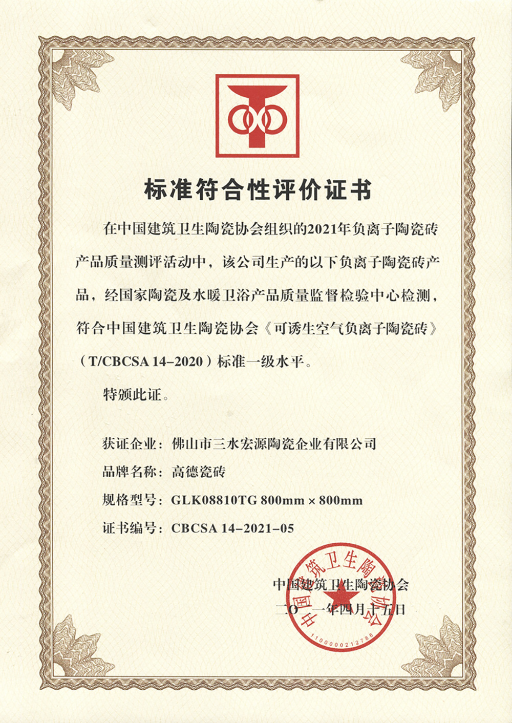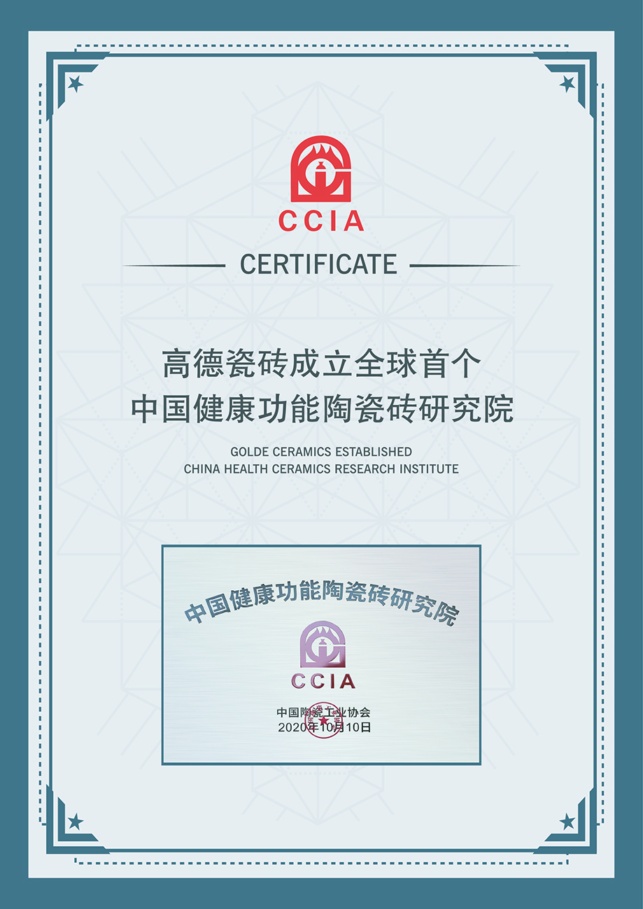 高德瓷砖成立健康功能陶瓷砖研究院证书